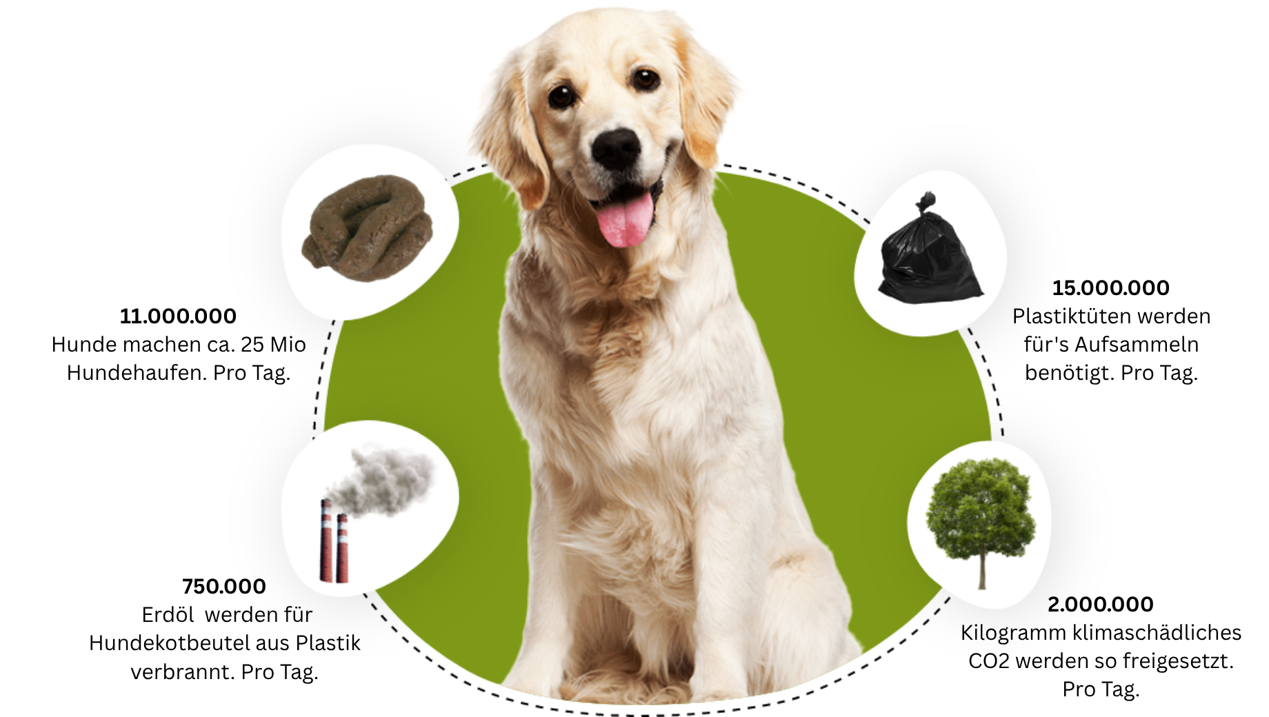 Jeden Tag werden alleine in Deutschland 15 Millionen Plastiktüten verbrannt, weil sie als Hundekotbeutel genutzt werden. Dadurch werden jeden einzelnen Tag Hunderttausende Liter Erdöl verbrannt, was klimaschädliches CO2 freisetzt und ganz konkret zur Erderwärmung beiträgt.