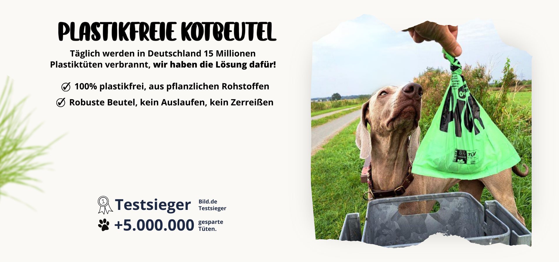 Verabschiede Dich von plastikbelasteten und ölbasierten Hundekotbeuteln und nutze mit Deinem Hund die umweltfreundliche Alternative zur Plastiktüte beim Gassi gehen